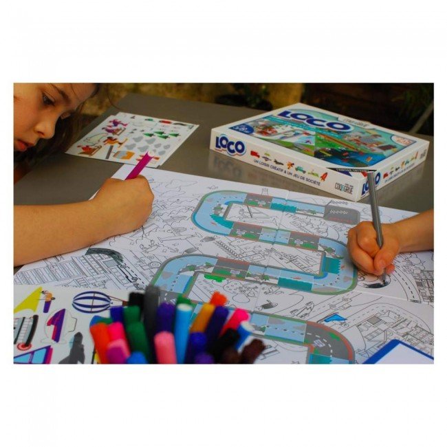 Loco associe des activités manuelles (plateau de jeu à colorier, cartes vierges à dessiner pour créer des jokers, autocollants à coller sur les cartes) et un jeu de plateau aux règles simples et évolutives. Cela permettra aux enfants de découvrir la stratégie, tout en s’amusant.