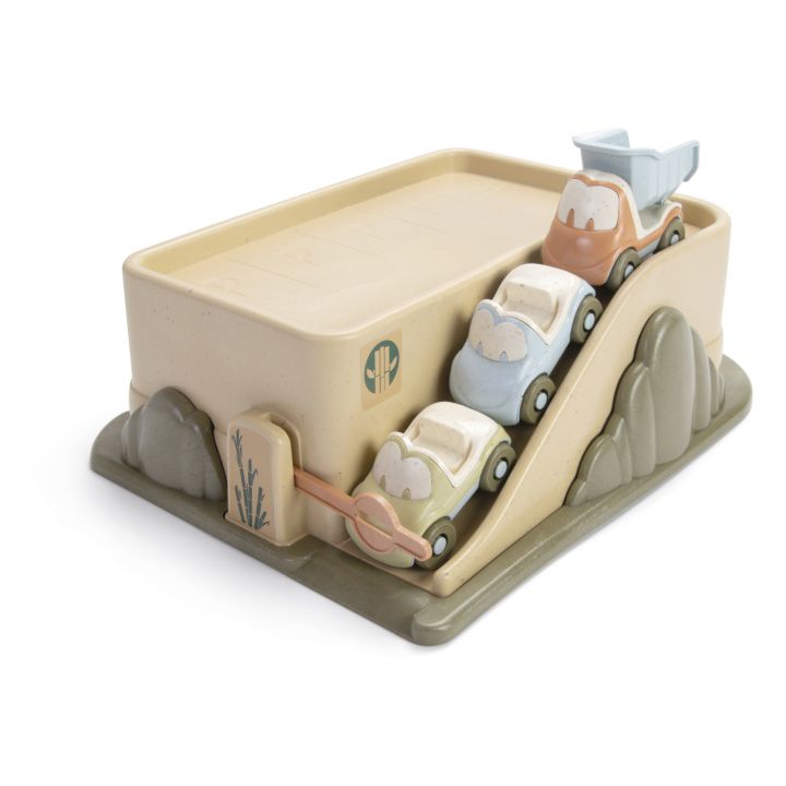 Ce premier garage a été fabriqué à partir de bioplastique au Danemark. Accompagné de ses 3 voitures, il développe l’imagination et permet de s’amuser pendant des heures.