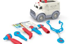 Ce jouet écologique est 100% plastique recyclé et fabriqué aux États-Unis, transporté jusqu’en Europe par bateau.