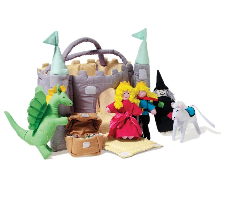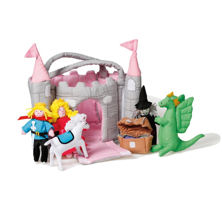 Ce château abrite un couple royal, une malle au trésor, un cheval, un dragon et une sorcière.