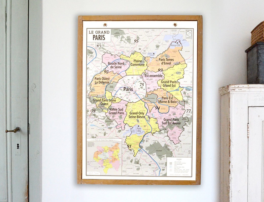 Une carte murale de Paris dans le style des cartes d’école de notre enfance.