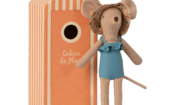 Comme chaque petite boite Maileg, la boite en forme de cabine de bain est un aussi petit endroit ou se sécher, se changer et dormir notamment.