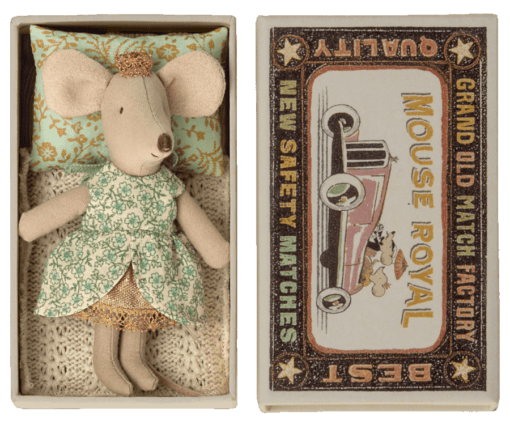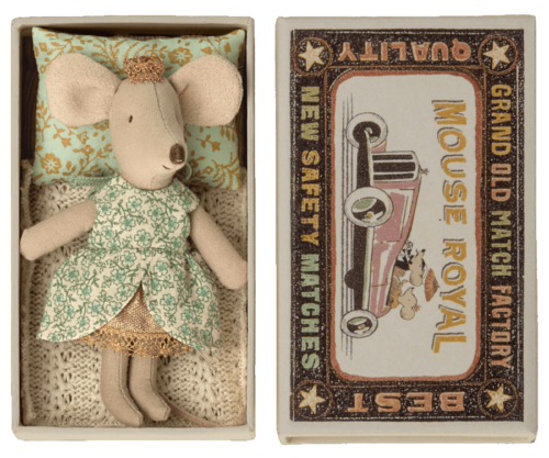 Comme chaque petite boite d’allumettes Maileg, la boite est un aussi petit lit douillet avec oreiller, couverture au crochet et matelas.