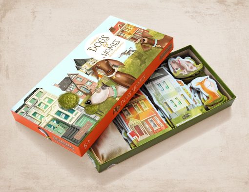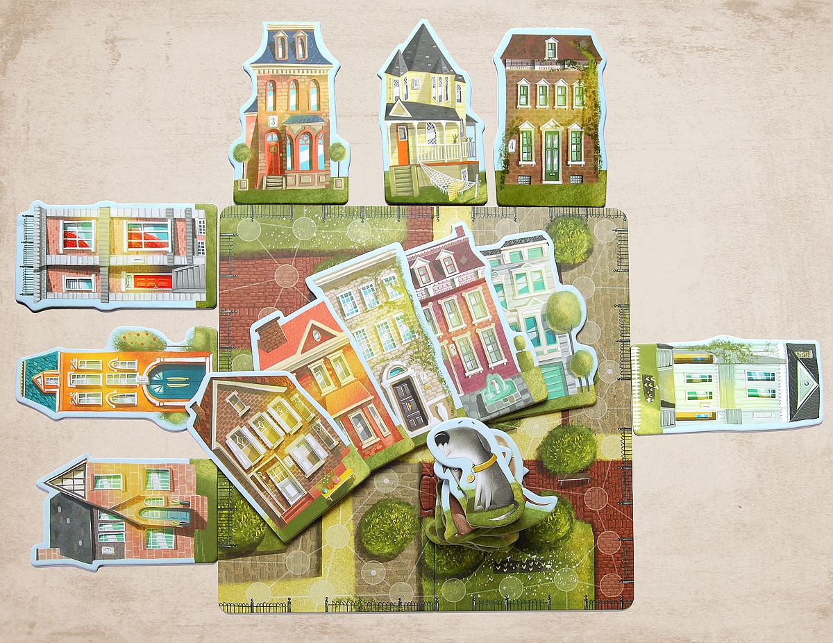 Contient : 4 pions détectives, 1 plateau parc, 12 maisons, 12 chiens, 16 disques indices.