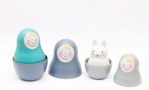 Matriochka et son hochet lapin à carillon (joli tintement). Votre petit va adorer ce jouet à emboîter.