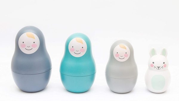 Matriochka et son hochet lapin à carillon (joli tintement). Votre petit va adorer ce jouet à emboîter.