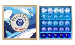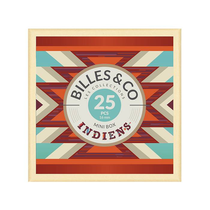 Coffret de 25 billes diamètre 16 mm réparties sur 5 modèles différents.