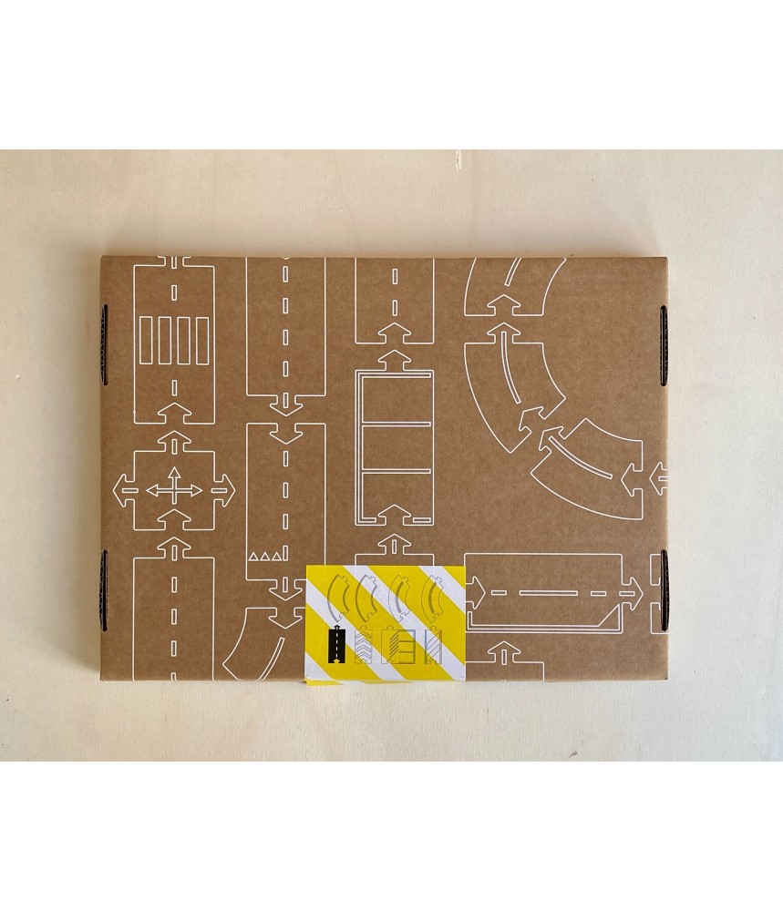Le coffret circuit en carton recyclé est idéal pour laisser libre cours à l’imagination lors du jeu : vos enfants créent leurs propres circuits routiers pour leurs voitures et autres jouets favoris.