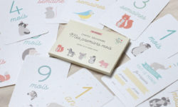 Un coffret contenant 16 cartes étapes illustrées pour accompagner les photos des premières fois de l’enfant.